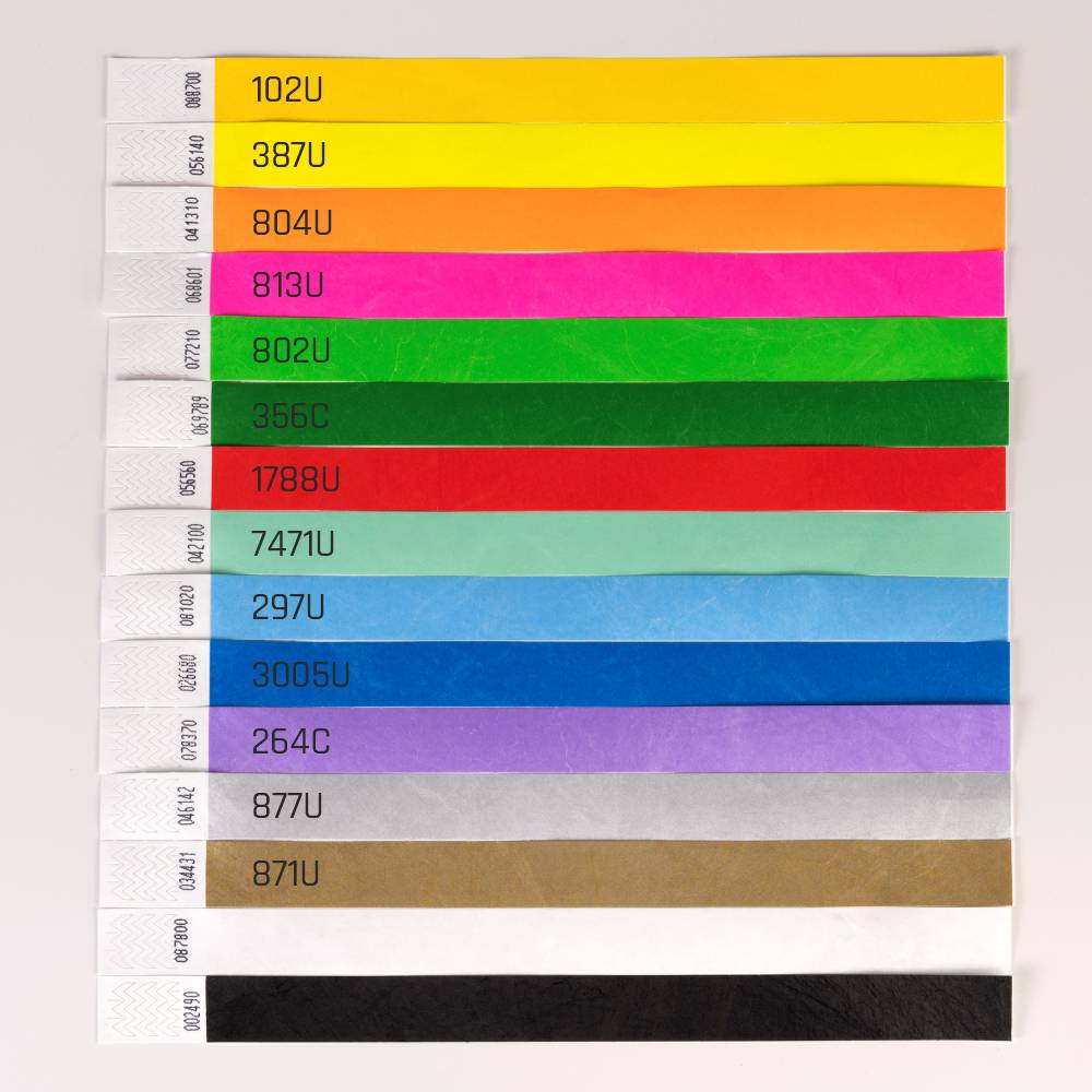 Thanks to their slim profile, Tyvek Slim wristbands are not only lightweight and comfortable but also allow full freedom of movement. Their waterproof nature makes them ideal for all weather conditions, keeping your prints intact even in the rain. Besides standard identification, our Tyvek Slim wristbands can also serve as marketing tools, with the option to print logos, slogans, or graphics using screen printing, pad printing, or hot stamping. It’s a great way to promote your brand or event.